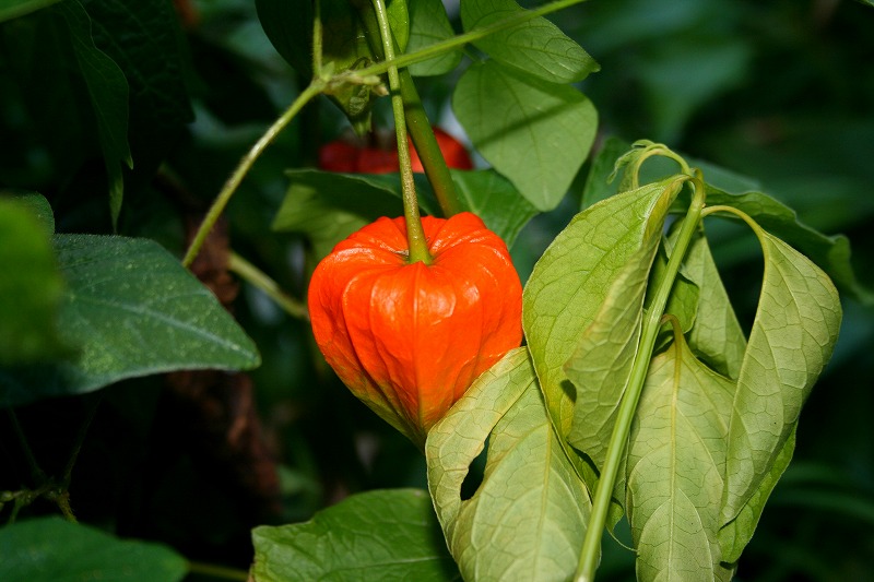 深山荘にあります「ほおずき」です。 だんだんと赤くなって来ました。 昔小さい頃、「この中の実を柔らかくなるまで手で揉んでから 食べてみなさい」 と言われた記憶があります。 実際、柔らかくなるまで揉んだのですが、 勇気がなく食することが出来ませんでした。 どんな味がするのでしょうね! 未だに謎です。