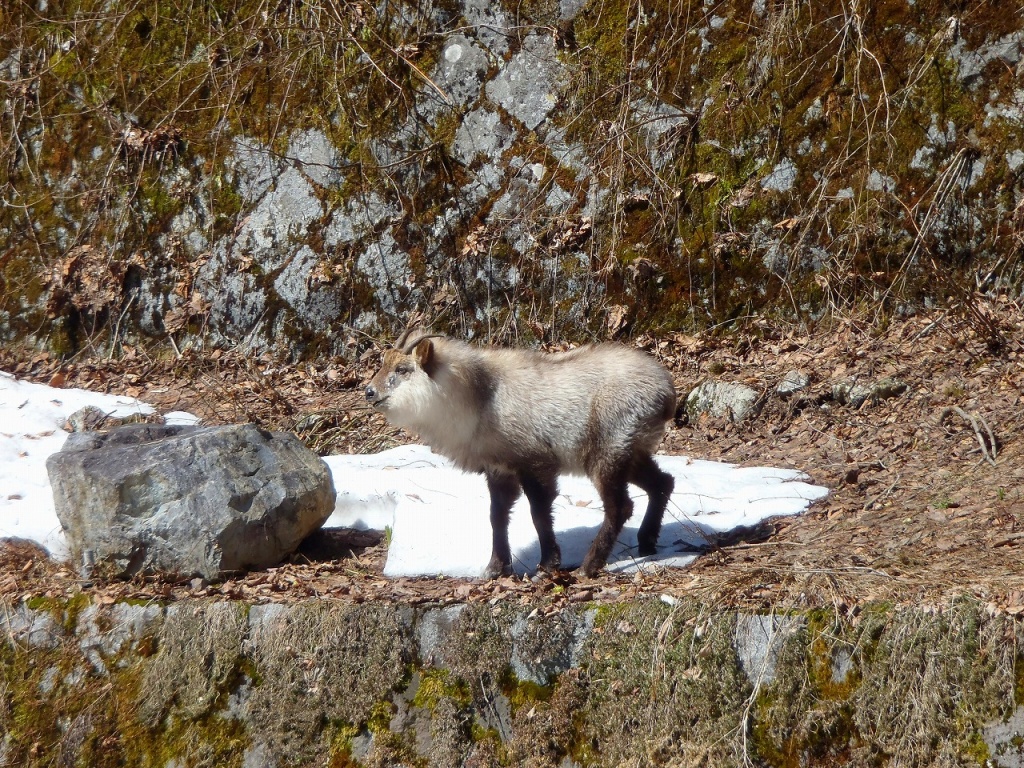 カモシカに深山荘より上流約2㌔の所で遭遇しました。