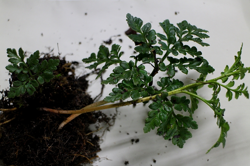 カンワラビ(フユノハナワラビ)発見です。 昔から薬効効果として 腎臓病や胃腸病に良いと言われています。 ある所では1本300円で売っていました。 根を付けてきたのは 近くに移植するためです。