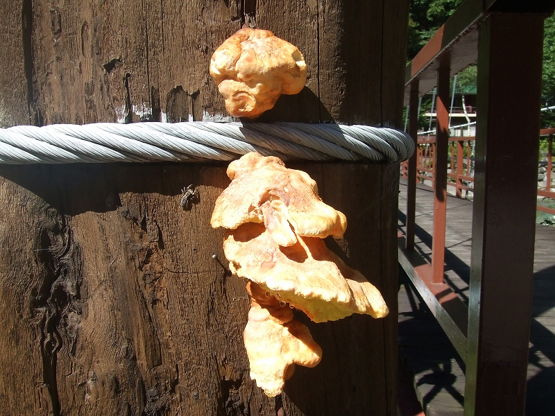 深山荘への吊り橋、「かじか橋」の横にはっています「ワイヤー」の