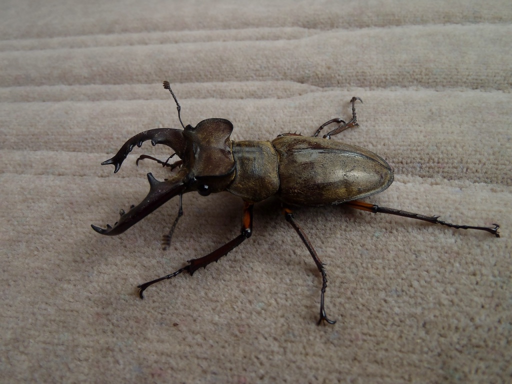 今年初めての「ミヤマクワガタ」です。 このミヤマクワガタ何処にいたかというと、なんと高山市内の某お店の駐車場にいました。 自動車に引かれることなく、運の強い持ち主です。 体長約65mmもありました。 某お店の中には、カブトムシが¥900で売られているというのに こんな超大物が外の駐車場にいるとは誰が思うものでしょうか? 深山荘に持ち帰り、逃がしてあげました。