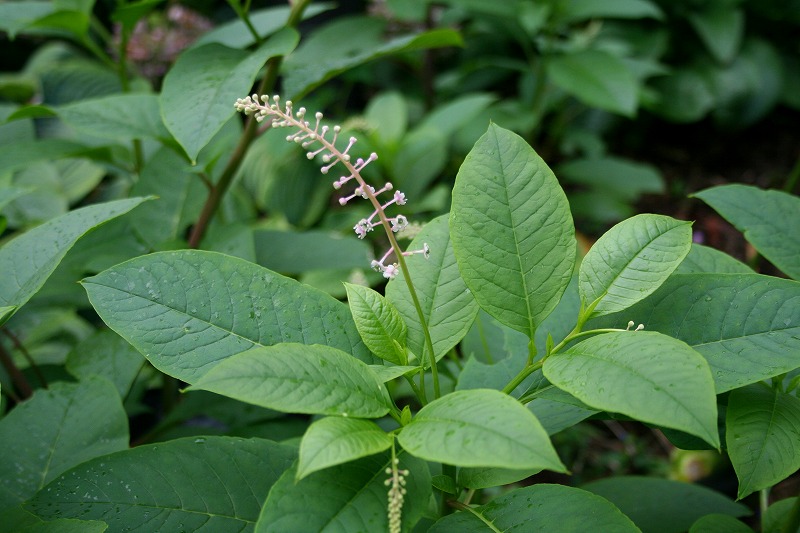 吊り橋「かじか橋」横にヨウシュヤマゴボウがはえていました。 有毒植物で一回、刈り取ったのですが又、はえてきました。 生命力が強いですね!
