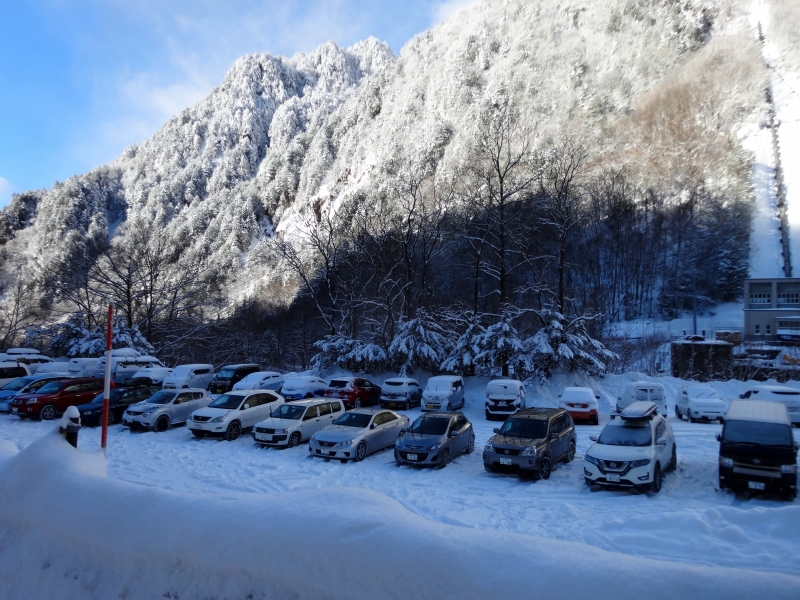 冷え込みの厳しい朝となっています。 深山荘でマイナス8度です。 手袋なしで雪かきをしていると、10分と持ちません。 写真は新穂高センターにあります駐車場です。 週末になると多くの登山のお客様で一杯になって来ます。 ちなみに3月末まで無料となります。
