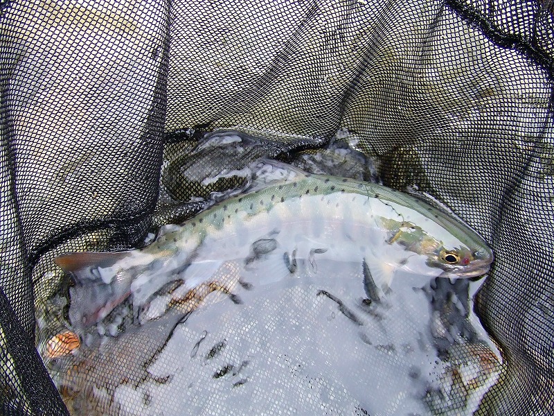 昨日ご宿泊のお客様が釣られた「山女魚」です。 「かじか橋」の下で釣られ、約20㎝ありました。 今年の蒲田川は、梅雨時でしかも雪解け水もあるのにかかわらず雨が さほど降らないため、増水する事無く 釣りをされるには丁度良いですね!