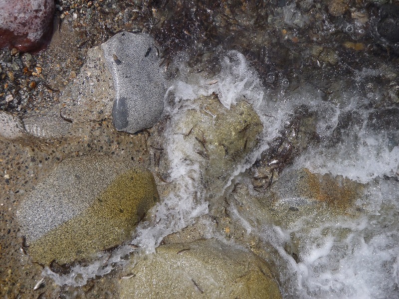最初は浅瀬に皆で固まっていますが、そのうちに徐々に旅たって行きます。