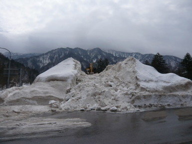 2月24日に紹介しました「巨大かまくら」です。 昨日、11日間の役割を終え取り壊されました。 最近の雨でこのままにして置くとあぶないからですね 大型の重機がこんなに小さく見えます。