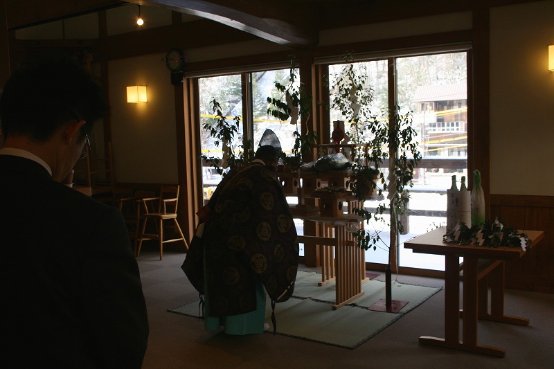 新穂高町内会のお祭りです。 ただ小さな町内会ですので、道行(行列)というものはありません。 日にちの設定もありませんし 雨が降ったり雪ですと、この様に臨機応変に館内で行う事もあります。 玉串の奉奠等を行った後に研修旅行に出かけます。 そのため、深山荘 最新情報は11月30日より再開致しますので よろしくお願い致します。
