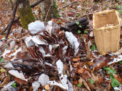 朴葉ステーキや朴葉味噌に使う葉っぱを拾いにやって