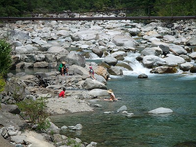 ようやく水量も減って来たのですが まだまだ冷たいです。 でもお客様たちは 川に入ったり、露天風呂に入ったりと 遊んでいます。 このまま天気が続きますと、水温が上がって来ますので 魚釣りは今がチャンスです。 ポイントは「かじか橋」下。 又はその下流です。 すぐ上に堤防があるためそこから 登ることができず かたまっています。 お客様の情報によりますと 約25㎝の岩魚 数本と 尺の山女魚1本あげたそうです。 ちなみに キャッチ・アンド・リリース だそうです。