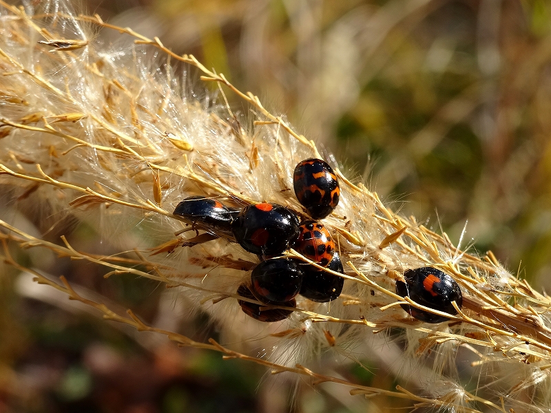 その穂先の中に「テントウムシ」が9匹かたまっていました。