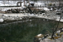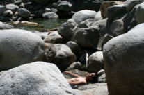 今年は水量が多かったのですが、やっとで川の淵に天然の露天風呂が現れてきました