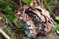 キイロスズメバチの巣の入り口を踏んでしまったため、