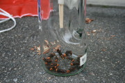 ④ここが勝負!仮死状態のときにピンセットを 使いビンに入れます。 一匹逃げてしまいました。 |