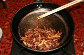 ⑤冷たいフライパンに油をひき、弱火で炒めます ※注 強火はダメです。 |
