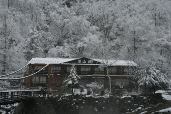 外は雪が降り