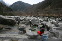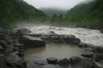 混浴露天風呂に泥水が