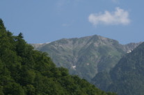深山荘の川下に見える「焼岳」の雪がなくなってしまいました。
